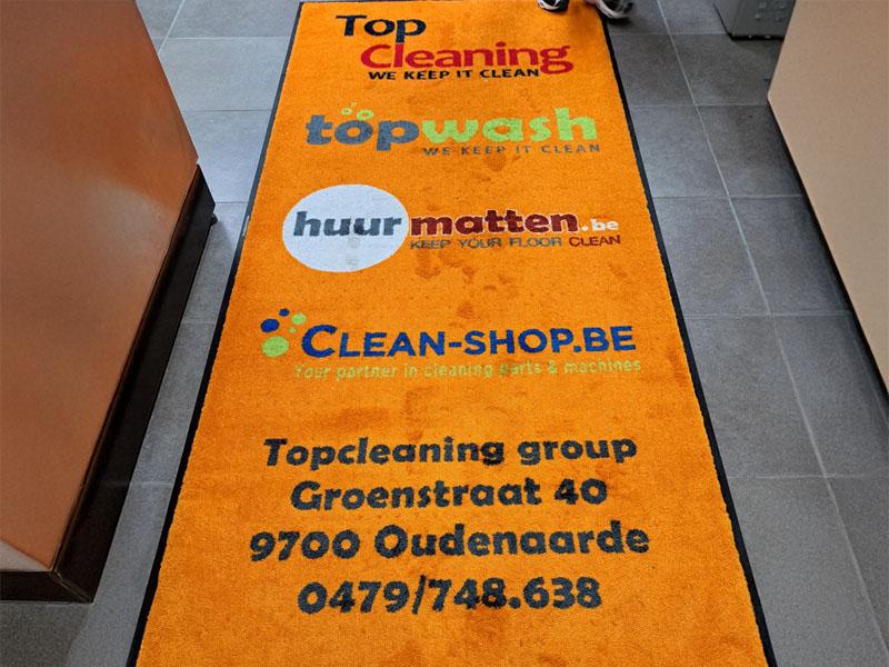 De logomatten van Topcleaning zijn dan ideal om klanten te verwelkomen in uw zaak. Naast de herkenbaarheid zorgt het ook voor een vlekkeloze vloer.